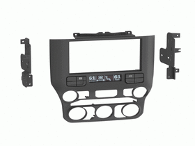 - Stereo installation kit designed to fit aftermarket shallow-mount, modular, or “L” shaped radios with the chassis at the bottom of the screen