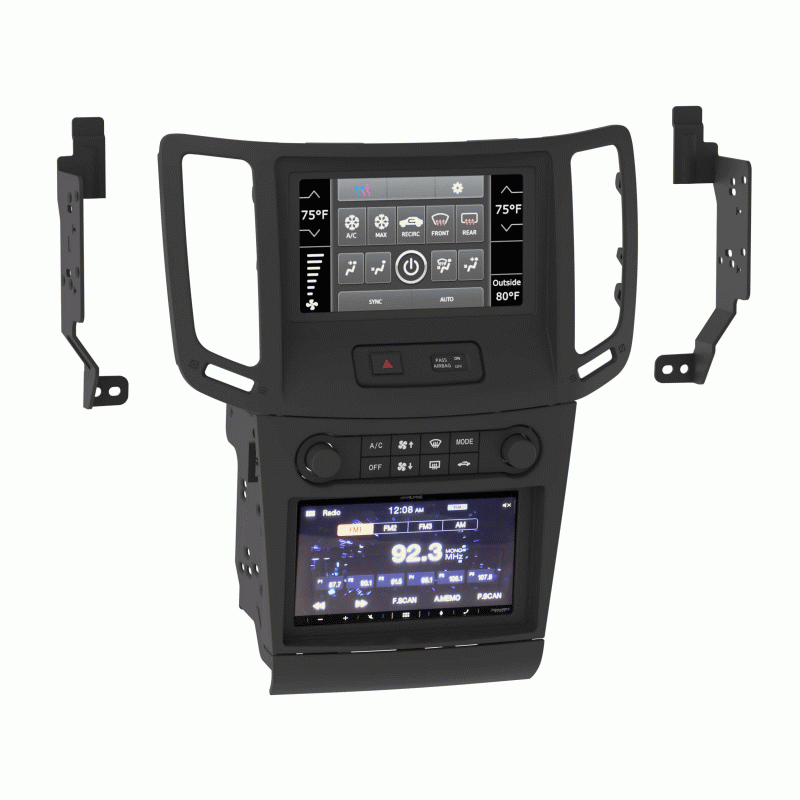 Metra’s TurboTactile™ and TurboTouch® kits come together and feature the best of what each kit has to offer. This kit features easy-to-use rotary knobs that allow for the control of climate functions along with a 7” touchscreen that retains most of the features normally lost when replacing the factory radio. Additional factory-style hard buttons have laser-etched graphics for access to vehicle personalization menus. Metra’s built-in patented interface technology retains climate control, safety, and steering wheel control features. The vehicle’s hazard button and passenger airbag indicator have also been integrated into the kit. This kit is painted scratch-resistant matte black to match the factory finish and includes installation parts needed for a Double-DIN aftermarket radio installation.