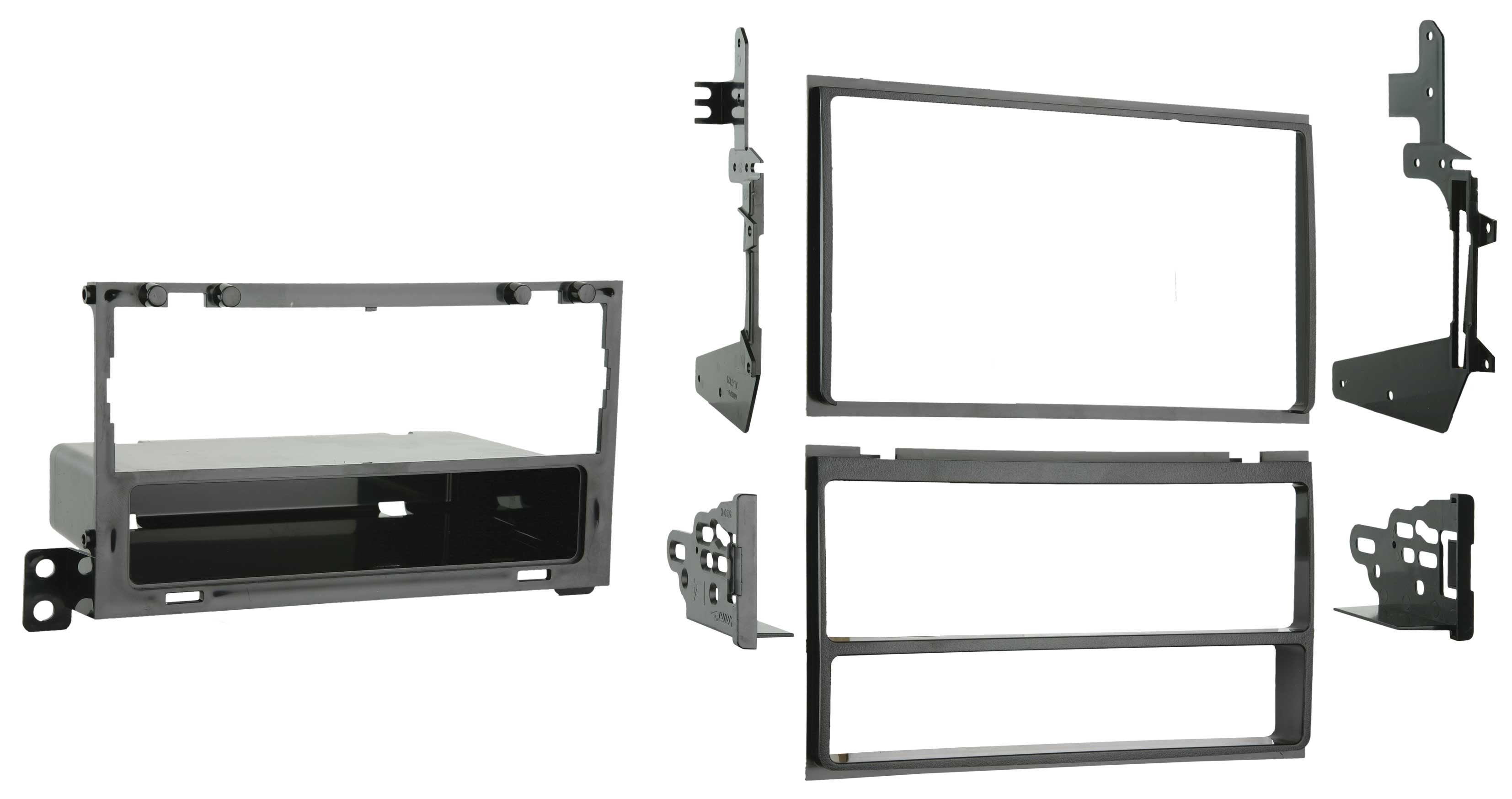 - Includes parts for installation of double DIN radios or two single DIN radios