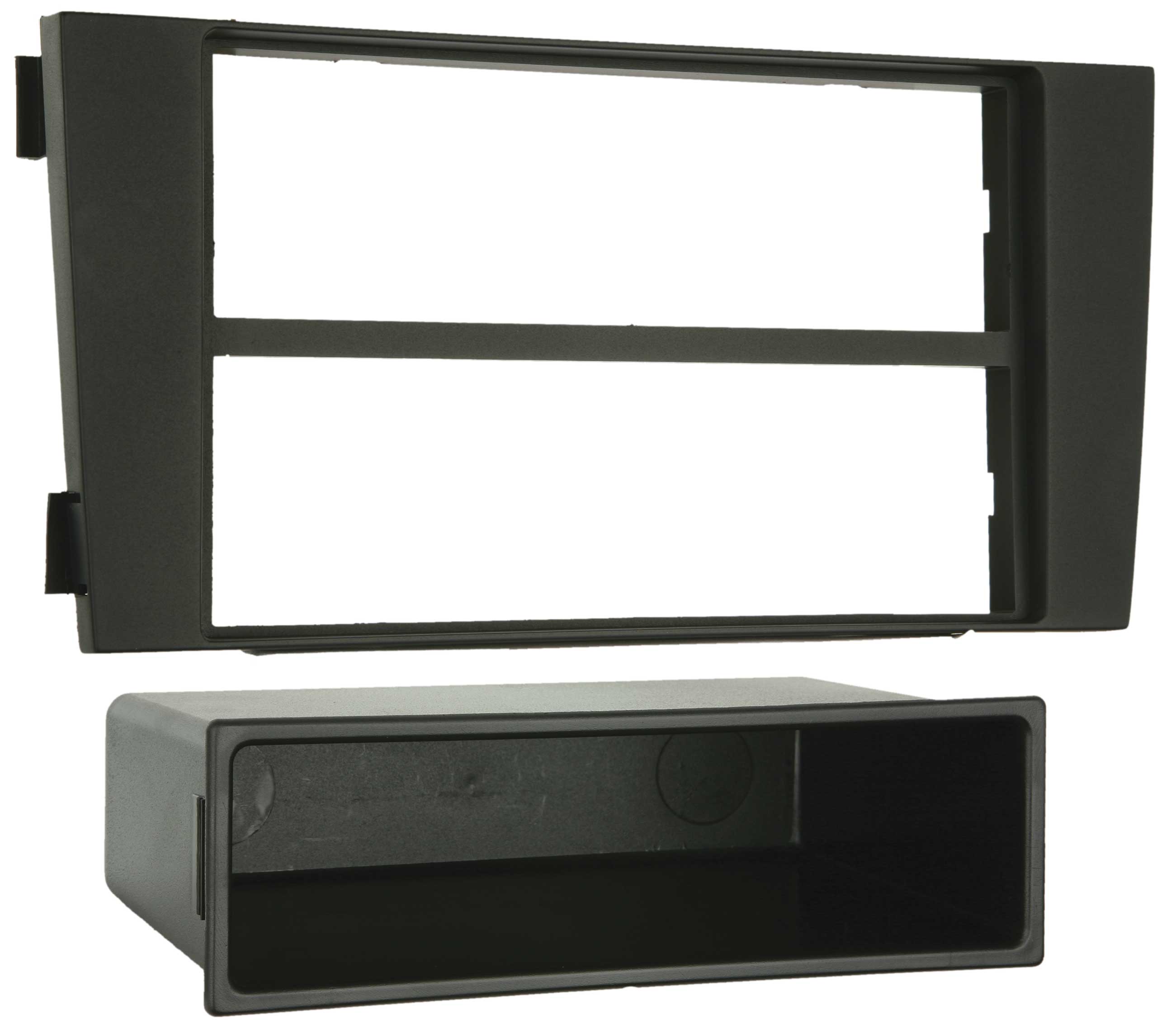 - Accommodates a full DIN radio with pocket or mounts two DIN radios without pocket