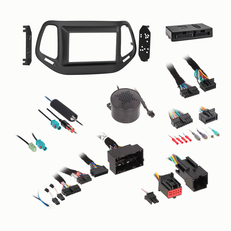 - This package includes a dash kit, interface with plug-n-play harnessing, and antenna adaptor.