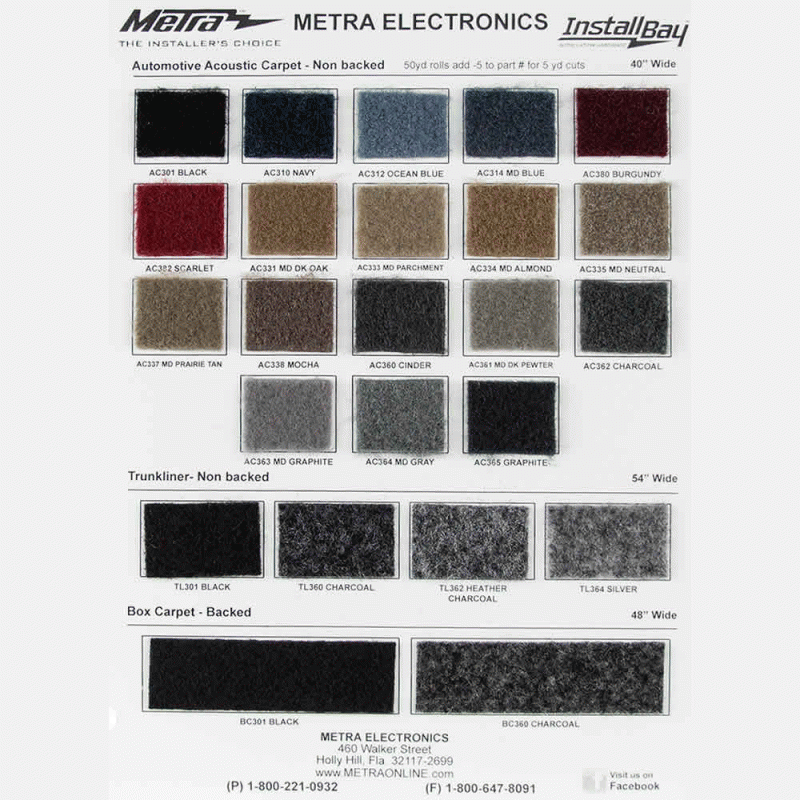 AUTOMOTIVE, BOX CARPET & TRUNKLINER SAMPLE CHART
