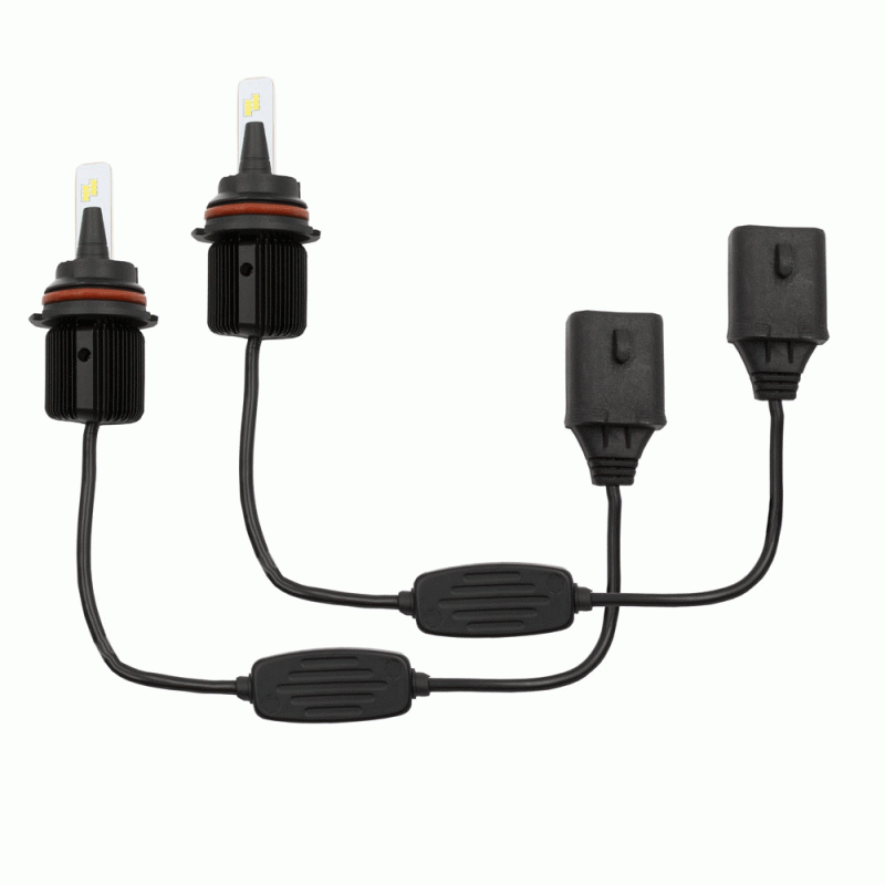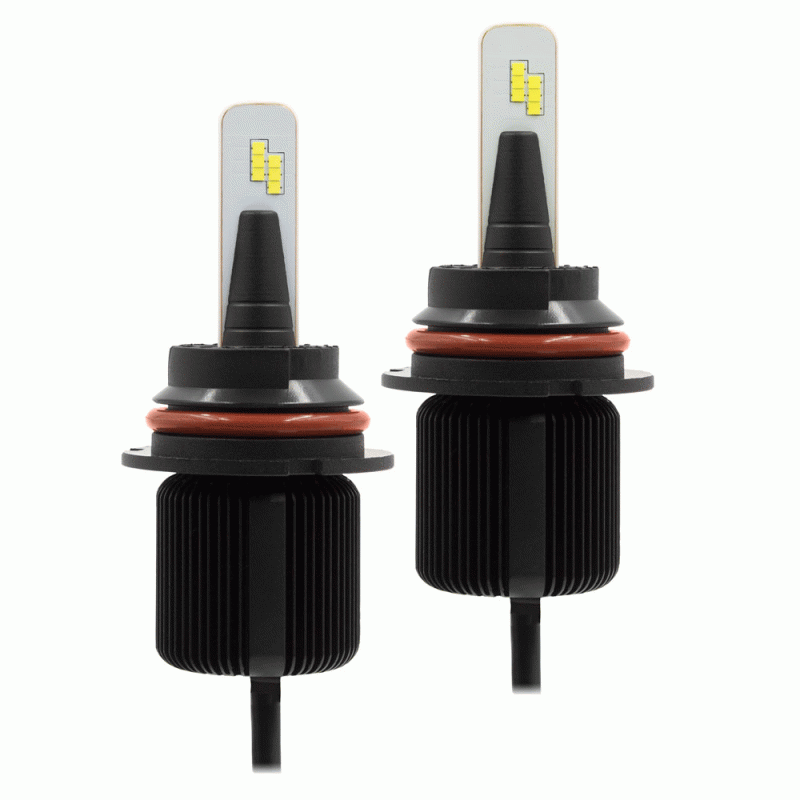 These bright lights are designed to fit into tight spaces with a compact design that doesn’t compromise performance. By engineering a high density fin design, these bulbs stay as cool or even cooler than traditional LED bulbs with bulky heat sinks or messy braid designs. The light output is equally impressive with a total of 6,000 lumens of cool white (6500K) illumination per pair using 20 watts per bulb. Kits are available in the most common headlight sizes.