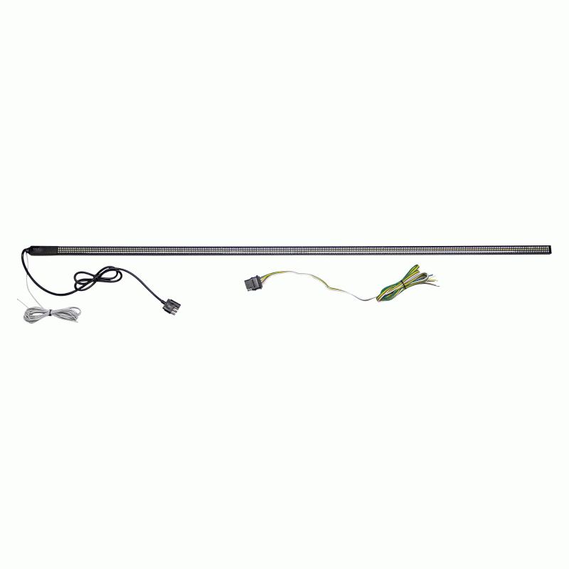 Function meets style in this 48” Sequential LED Tailgate Lightbar. Increase visibility and safety on the road with eye-catching left and right sequential turn signals, running, brake, and reverse lighting functionality. Featuring 810 highly concentrated LEDs, this lightbar provides seamless lighting with no dark spots. A pre-wired 4-pin trailer harness is included for simple plug-n-play installation, along with an adapter for hardwiring on trucks without trailer connectors. No drilling is required, simply attach below the vehicle tailgate using the included 3M adhesive tape. This lightbar is sealed to prevent moisture or dust from infiltrating behind the lens and is rated IP67 to withstand the elements. With universal vehicle fit applications, this product offers a versatile lighting solution for a wide range of trucks and SUVs.
