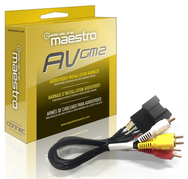 Optional harness to retain rear seat entertainment system in GM5 vehicles. Provides A/V connections to the factory video screen and A/V input port. Part Number: HRN-AV-GM2