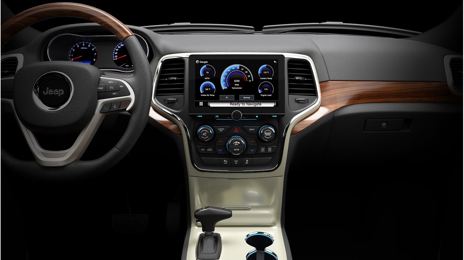 Radio replacement dash kit for 2014-Up Jeep Grand Cherokee vehicles.